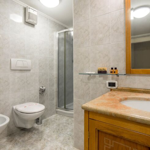 Nelle camere da letto troverete un armadio dove riporre i vostri abiti, gli asciugamani da spiaggia e la cassaforte. Un bagno è allestito con doccia, WC, Bidet e asciugacapelli e l’altro è un bagno di servizio.