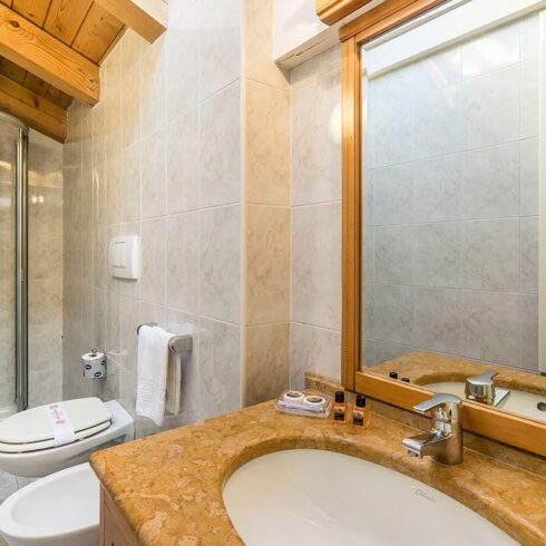 I bagni sono allestiti con doccia, WC, bidet e asciugacapelli.